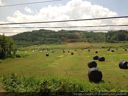 乾草堆居然套上了白色與黑色的塑膠袋,不知道是什麼原因